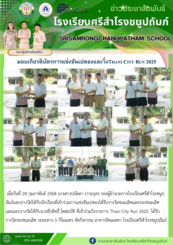 มอบรางวัลให้กับนักเรียนที่เข้าร่วมการแข่งขันเปตองได้รับรางวัลชนะเลิศและรองชนะเลิศ และมอบรางวัลให้กับนายธีรสิทฺธิ์ โตสมบัติ ที่เข้าร่วมวิ่งรายการ Thani City Run 2025 ได้รับรางวัลรองชนะเลิศ ระยะทาง 5 กิโลเมตร