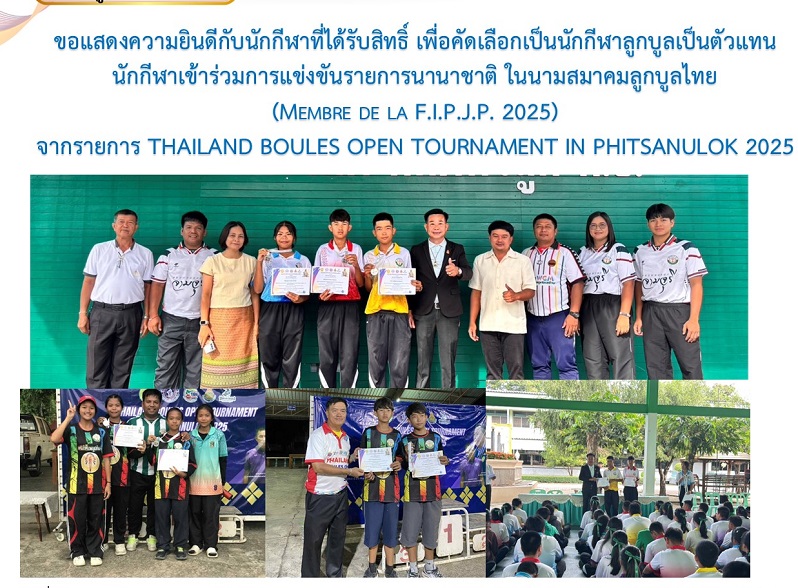 มอบเกียรติบัตรรางวัลพร้อมกับแสดงความยินดีกับนักเรียนที่เข้าร่วมแข่งขันรายการTHAILAND BOULET OPEN TOURNAMENT PHITSANULOK ได้รับรางวัลดังนี้ รางวัลรองชนะเลิศอันดับ1 เยาวชนหญิง 17 ปี รางวัลรองชนะเลิศอันดับ1 ชายเยาวชนชาย 17 ปี รางวัลรองชนะเลิศอันดับ 4 ชายเยาว